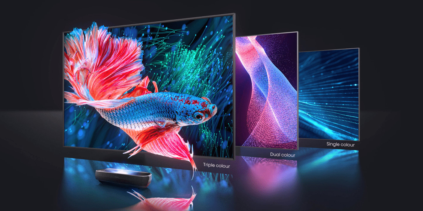 The RGB triple colour laser light source generates the three coloured parts of a picture in a parallel, generating improved colour representation and brightness uniformity. Wider colour gamut and improvements in Trichroma laser engine and ambient light rejection screen creates images more closely resembling what the human eyes truly sees.
